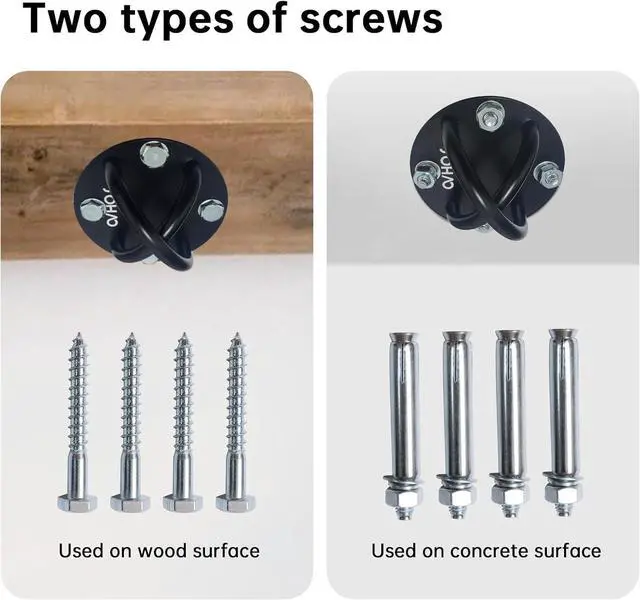 2 Sets of Screws4 Expansion Screw for Concrete Structures and 4 Self-Tapping Screws for Wooden Structures, can be easily mounted on walls, vertical studs or secure ceiling beams, but not on suspended ceilings.