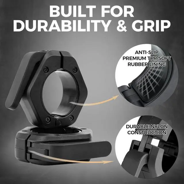 Ankle Straps and Barbell ClampsThe ankle straps are designed with D-shaped buckles for secure attachment and are lined with comfortable polypropylene material. They are compatible with most standard cable systems. The barbell clamps allow for quick and easy securing of weight plates and can be removed with one hand