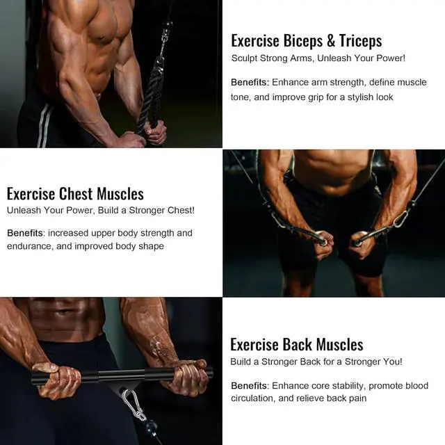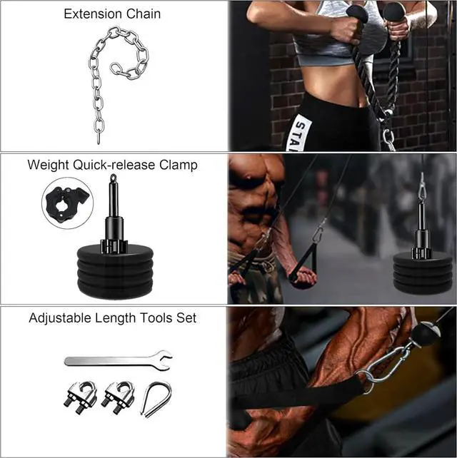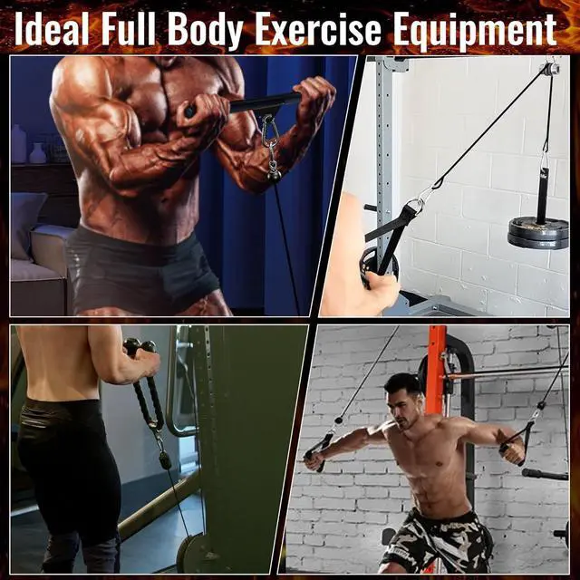 Upgraded Dual Pulley System: The cable attachments for the gym have 2 pulleys and more cable machine accessories than other gym pulley system kits. You can do various exercises in a complete and balanced way, such as biceps curls, triceps pulldowns, lat pulldowns, rowing, flyes, etc