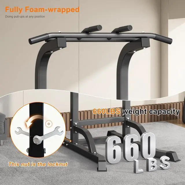 Heavy-duty ConstructionFeatured 2mm thickens premium steel tubing with corrosion resistant, our power tower ensures maximum strength and durability for long-lasting usage. Max Load 660 lbs