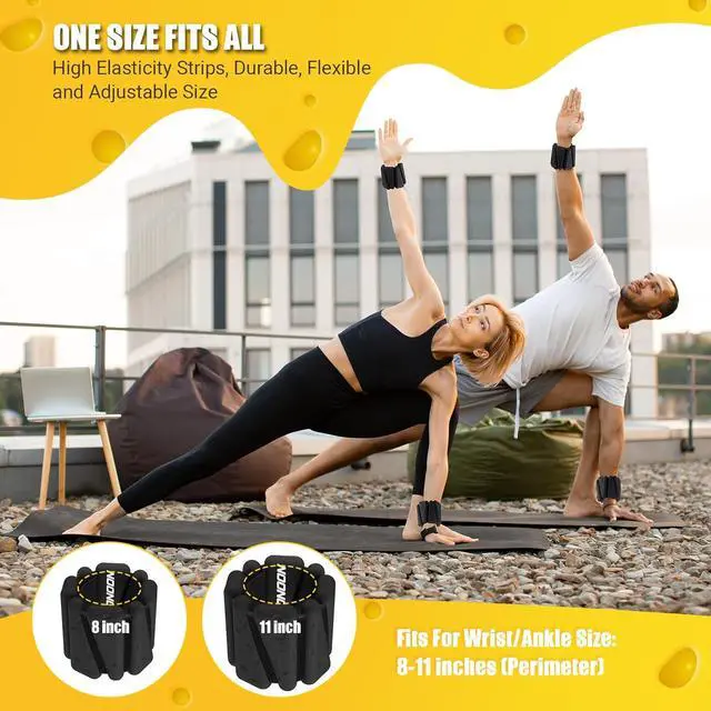 [ONE SIZE FITS ALL] Our 4 lbs wrist weights feature adjustable high-stretch strips and heavy-duty fasteners to prevent slipping during workout. The skin-friendly silicone material ensures comfortable, all-day wear for a wide range of physical activities. These weighted bangles fit wrist or ankle circumferences from 8 inches to 11 inches, accommodating men and women of all sizes for a personalized fit.