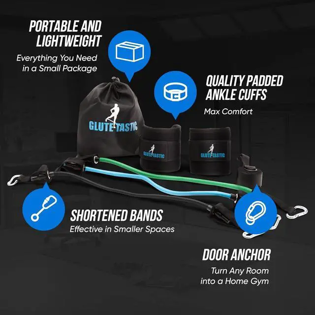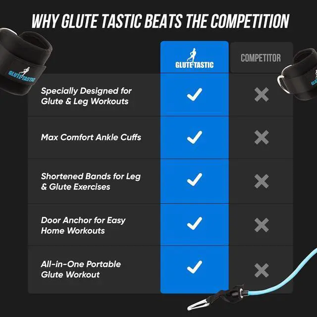 Premium Comfort and Strength - Our ankle resistance bands with cuffs are the most comfortable design on the market, which supports more intense workouts that create results. The Glute-Tastic has wide velcro design, double stitching and reinforced steel double D-rings to reduce stress, wear and tear. The adjustable resistance tubes offer varying weight options: