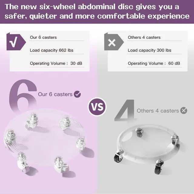 Easy to Carry and Store: The six-wheel abdominal wheel has six steel bearings, soft rubber, quiet and smooth, suitable for home, company, gym, 2.54 in high six-wheel abdominal wheel can be placed under any cabinet or sofa