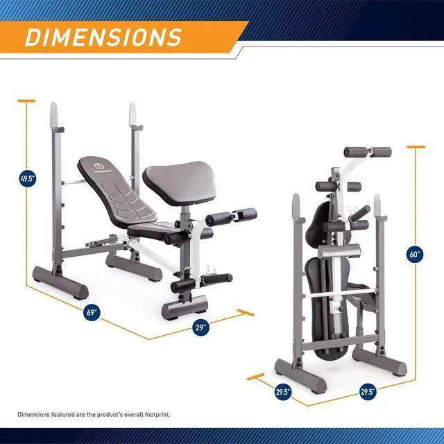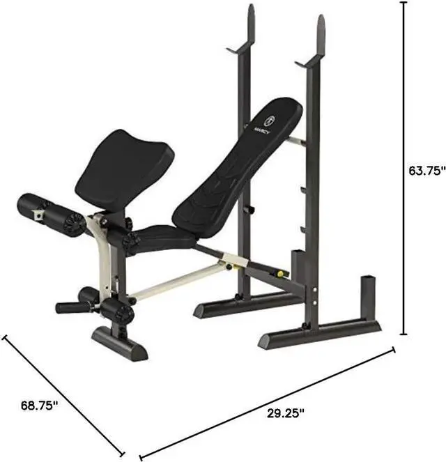 FULL BODY WORKOUT The Marcy Folding Standard Weight Bench offers a full body workout so you can chisel your body the way you want it. Get a balanced physique by training with the weight benchs arm curl facets, back and seat pads or the leg developer.