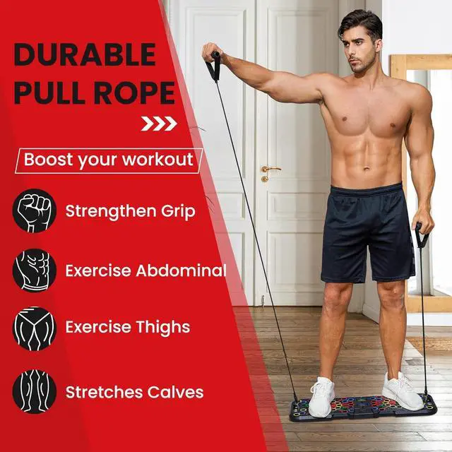 What You Get--1*push up handles for floor, 2*pull ropes. Whether youre a fitness enthusiast or a beginner, this versatile Push Up Board is a must-have addition to your fitness arsenal! Get your Push up board today and you will love it!