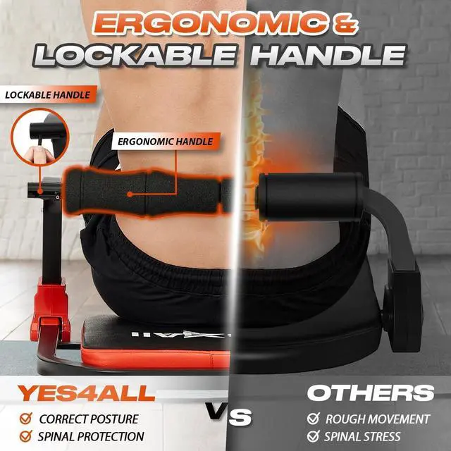 ERGONOMIC DESIGN FOR MAXIMUM COMFORT - The foam handle and padded backrest provide a comfortable workout experience, while the lockable design ensures stability during use