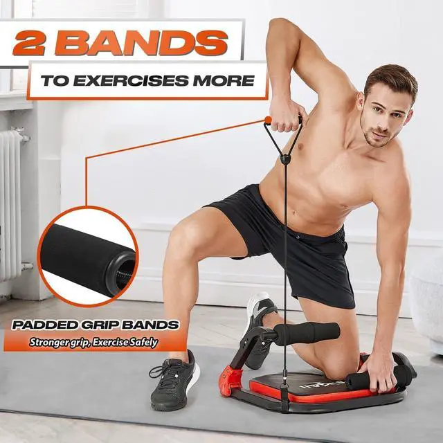 ADJUSTABLE RESISTANCE LEVELS - With 2 resistance bands included, this abdominal exercise machine allows you to customize your workout intensity based on your fitness level and goals.