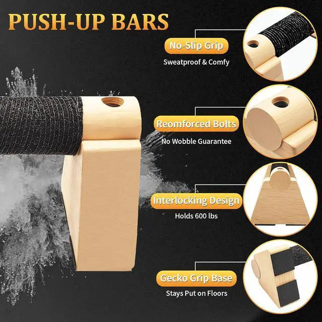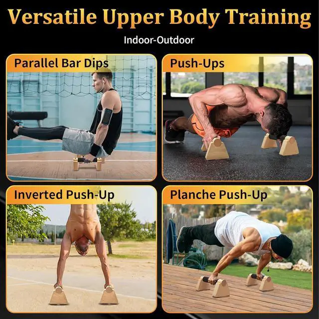 Premium Wooden ParallettesDurable wooden construction provides natural grip comfort, making these handstand blocks ideal for prolonged training sessions while maintaining stability