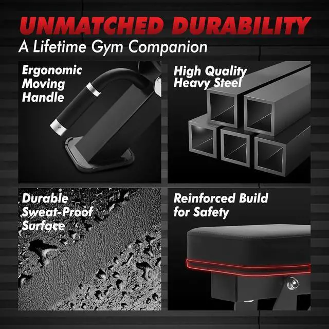 Simple Assembly and Transport: With a pre-assembled hinge mechanism and quick-install design, setting up this bench is a breeze. Transport wheels add mobility, making it simple to move and store anywhere.