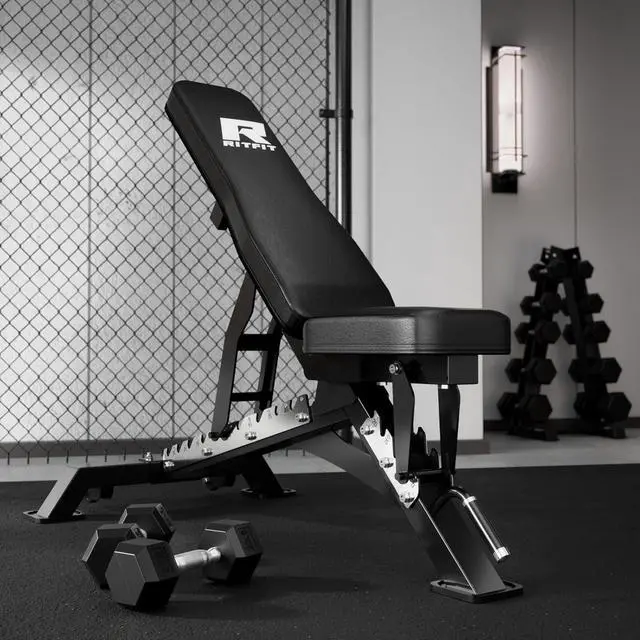 High Weight Limit: Our robust weight bench, tested for up to 1300lbs, supports varied fitness routines with a stable triangular base and enlarged anti-slip feet, ensuring safety and security during intense or extended exercises.