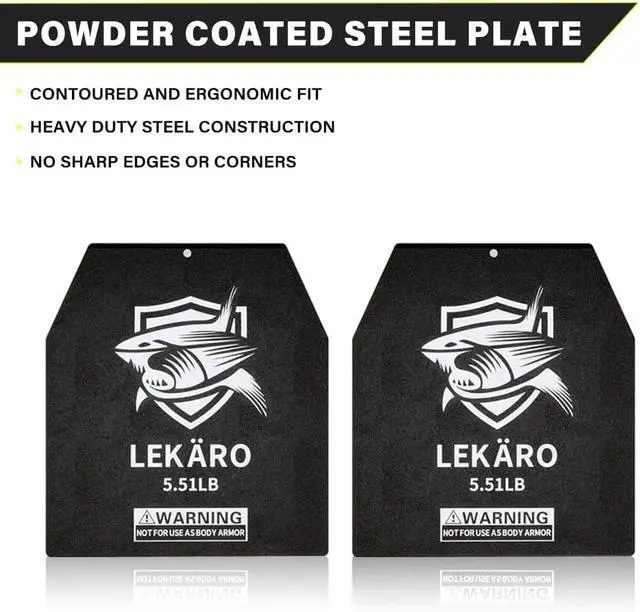 FOR EXERCISE USE ONLY STEEL WEIGHT PLATES Designed strictly for strength training, functional fitness, and rucking. No ballistic or defensive properties. Confirm vest pocket fits 9.8 " x11" before use. Quality backed by our satisfaction guarantee.