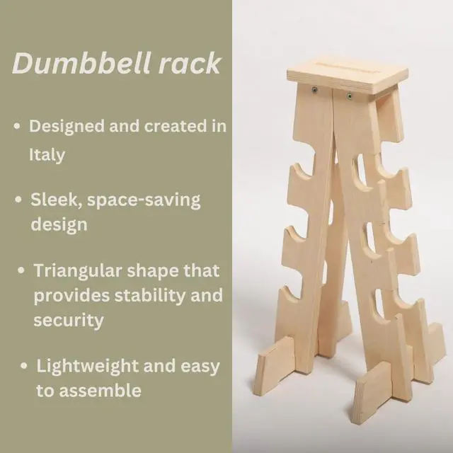 DESIGN: Designed and created in a triangular shape for optimum stability and minimum bulk. The slot for storing the weights has a good recess so that the weight cannot slip out. For optimal stability we recommend storing the heaviest dumbbell at the bottom.