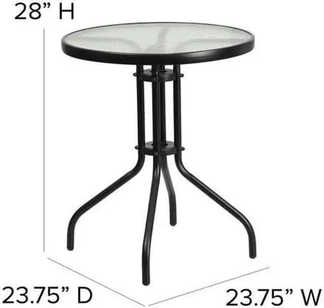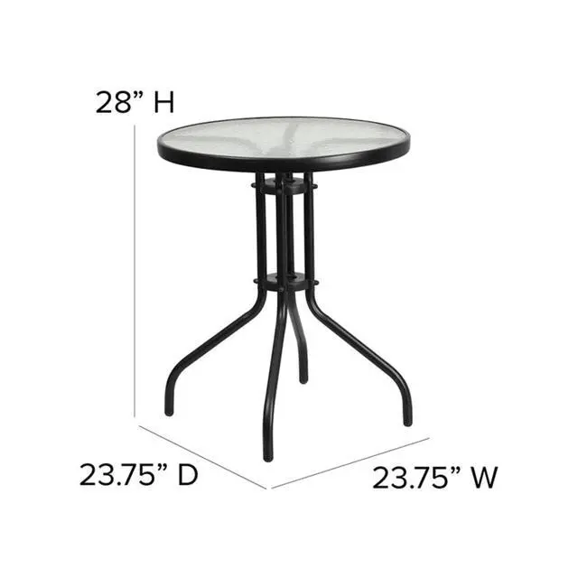 Glass Patio Table, Black, Round, 23.75 In., Features Plastic Floor Glides