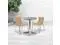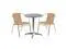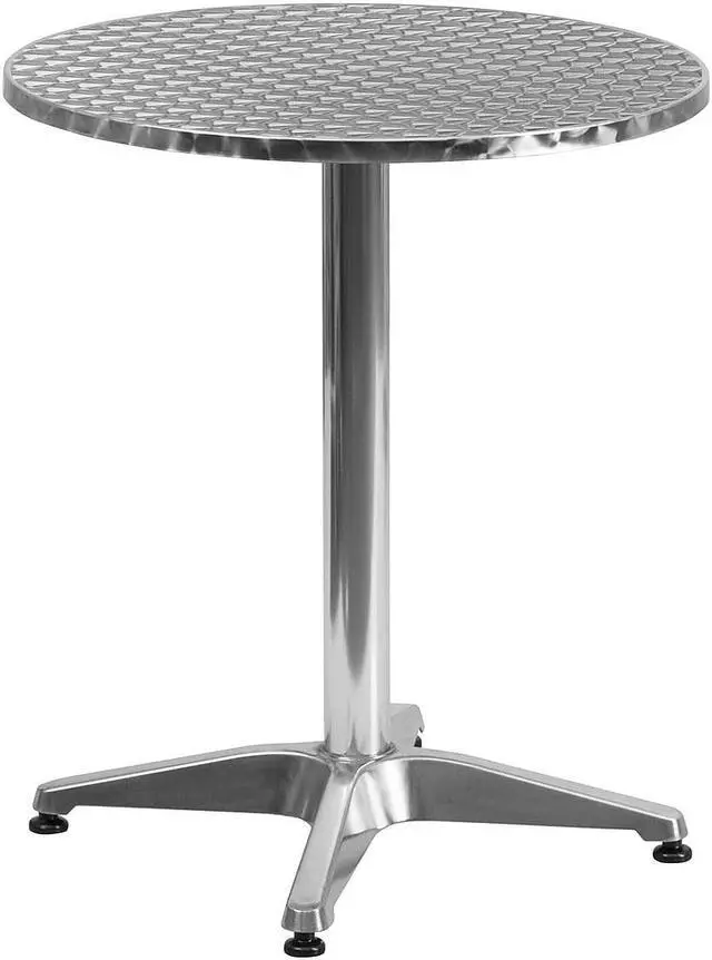 Create an enjoyable dining experience with this table set that will enhance your bistro, cafe, restaurant, hotel or home patio space. The designer style stainless steel table top features a smooth surface for keeping items level. The column and base are constructed of lightweight aluminum material. The chair is lightweight and easy to move and store. For easy storing and cleaning purposes these chairs stack up to 20 chairs high. This set was designed for all-weather use making it a great option for indoor and outdoor settings. For longevity, care should be taken to protect from long periods of wet weather. Whether you are just starting your business or upgrading your furniture this set will complete the look.