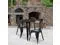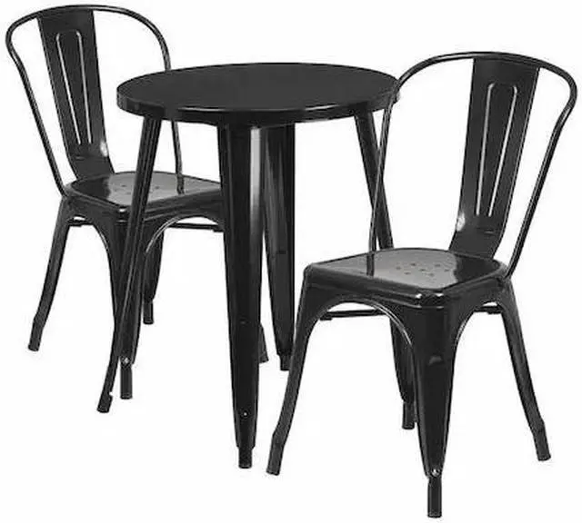 Complete your dining room, restaurant or patio with this chic table and chair set. This colorful set will add a retro-modern look to your home or eatery. Table features a smooth top and protective rubber floor glides. The stackable bistro chair features plastic caps that prevent the finish from scratching while being stacked. This 3 piece table set is designed for indoor and outdoor settings. For longevity, care should be taken to protect from long periods of wet weather. The possibilities are endless with the multitude of environments in which you can use this table, for both commercial and residential spaces.