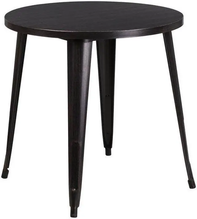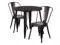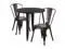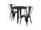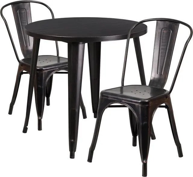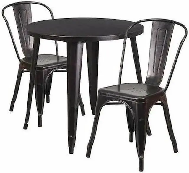 Complete your dining room, restaurant or patio with this chic table and chair set. This colorful set will add a retro-modern look to your home or eatery. Table features a smooth top and protective rubber floor glides. The stackable bistro chair features plastic caps that prevent the finish from scratching while being stacked. This 3 piece table set is designed for indoor and outdoor settings. For longevity, care should be taken to protect from long periods of wet weather. The possibilities are endless with the multitude of environments in which you can use this table, for both commercial and residential spaces.