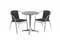 Single Unit Weight: 37 lbs. Fixed Dimensions: 23.5"L x 23.5"W x 27.5"H. Seating Capacity: 2 Count. Stack Quantity: 20 Count. Weight Capacity: 352 lbsChair Size: 21.75"W x 22"D x 29"H. Back Size: 12"W x 14"H. Seat Size: 17"W x 16"D x 17"H. Curved Back. Black Rattan Seat and BackColor: Aluminum. Material: Plastic. Back Style: Curved. Back Material: Wicker/Rattan. Back Color: Black. Base Style: Arch. Frame Material: AluminumBack Color: Black. Base Style: Arch. Frame Material: Aluminum. Seat Color: Black. Seat Material: Wicker/Rattan. Style: Contemporary.Table Top Material: Metal. Table Top Color: Gray. Table Shape: Round. Arms: Yes. Suitable for Outdoor Use. Assembly Required: Yes.