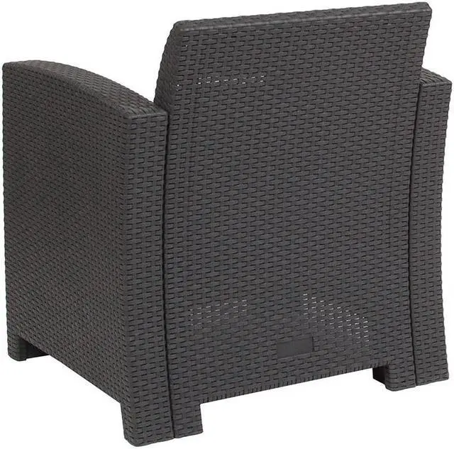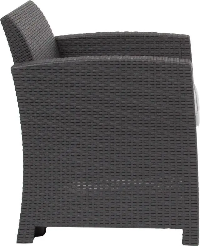 Dark Gray Faux Rattan Chair with All-Weather Light Gray Cushion