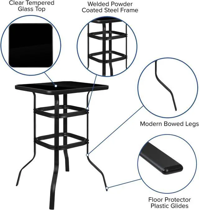 Savor your meals outdoors with family and friends on this glass patio bar table set.