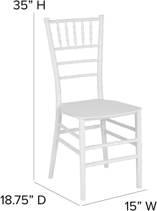 • Chiavari Seating,1000 lb. Weight Capacity,Stacks up to 8 Chairs,White Finish,Lightweight Design