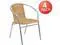 Enhance your bistro, cafe, restaurant, hotel or home patio space with this aluminum chair. This chair features a curved back, and rattan seat to keep you comfortable. This chair is constructed of lightweight aluminum to easily move and stack for storing. Cross braces provide extra stability. The protective plastic feet prevent damage to flooring. The frame is designed for all-weather use making it a great option for indoor and outdoor settings. For longevity, care should be taken to protect from long periods of wet weather. Pair this chair with an aluminum table to complete your setting.