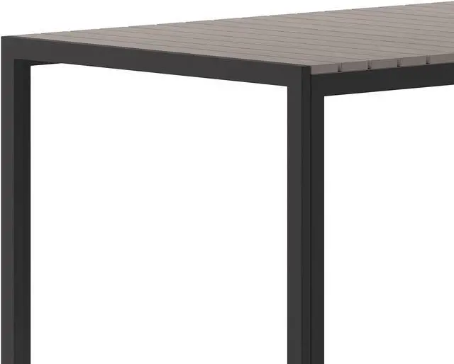 Upgrade your commercial or residential dining spaces indoors or outside with the modern, on-trend look of this faux teak patio table.