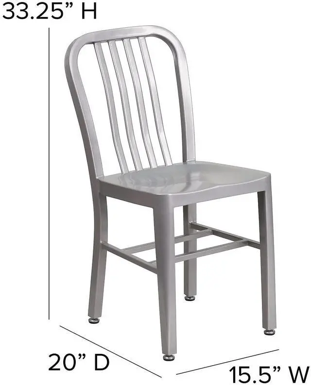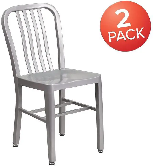 Silver Metal Indoor-Outdoor Chair, PK2, Package Quantity 2