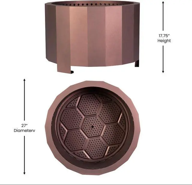 Extend your outdoor time with family and friends while staying cozy and warm when you gather around this outdoor smokeless wood burning fire pit available in 3 finishes to fit your personal style. The unique double wall design creates an airflow pattern that draws the bulk of the smoke back into the burn chamber so you can enjoy your leisure time. The unique all-in-one design of this backyard firepit has an integrated stand to elevate the steel frame adding an extra layer of heat protection to ground surfaces. The lightweight, portable design gives you the freedom to take this firepit tailgating, camping, or to the beach while the lift-out grate gets rid of any debris left from your last fire and the waterproof cover keeps this unit looking great. This modern firepit is ready for use right out of the box and wipes clean with a damp cloth.