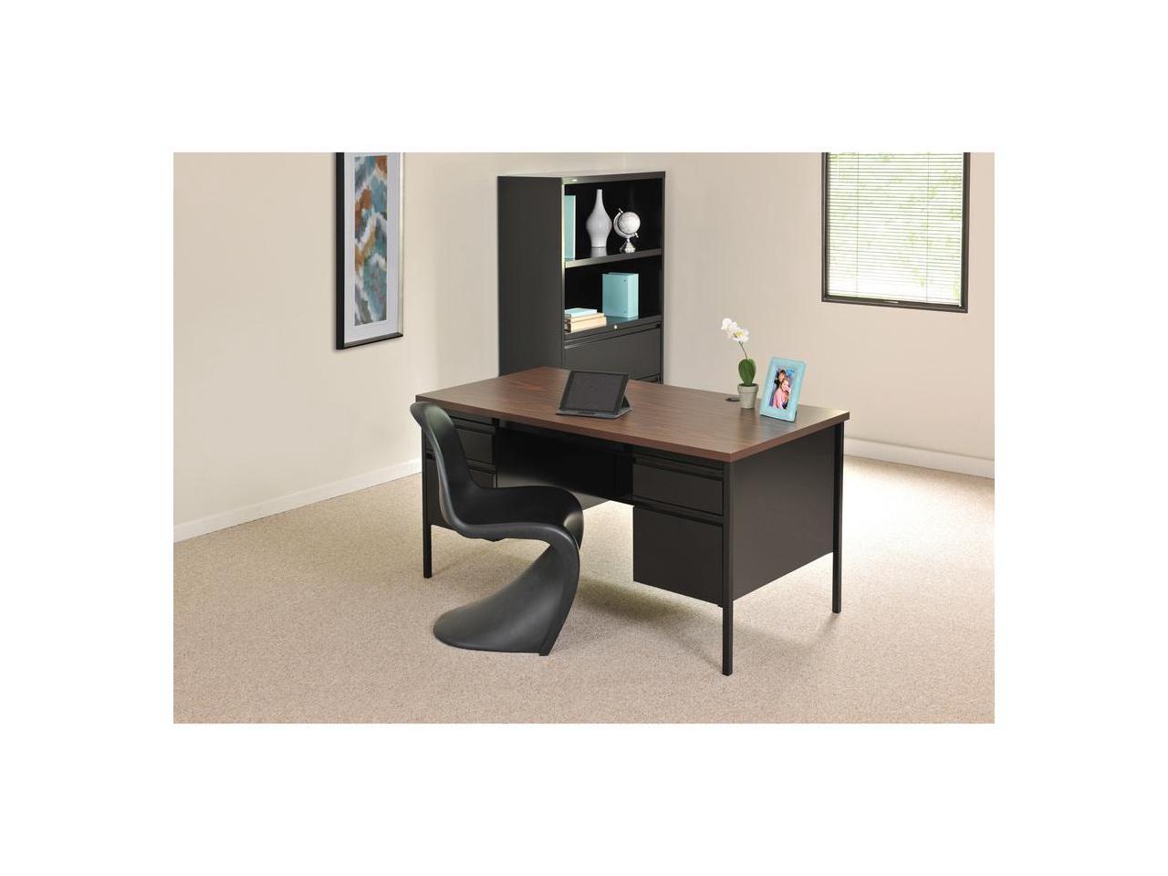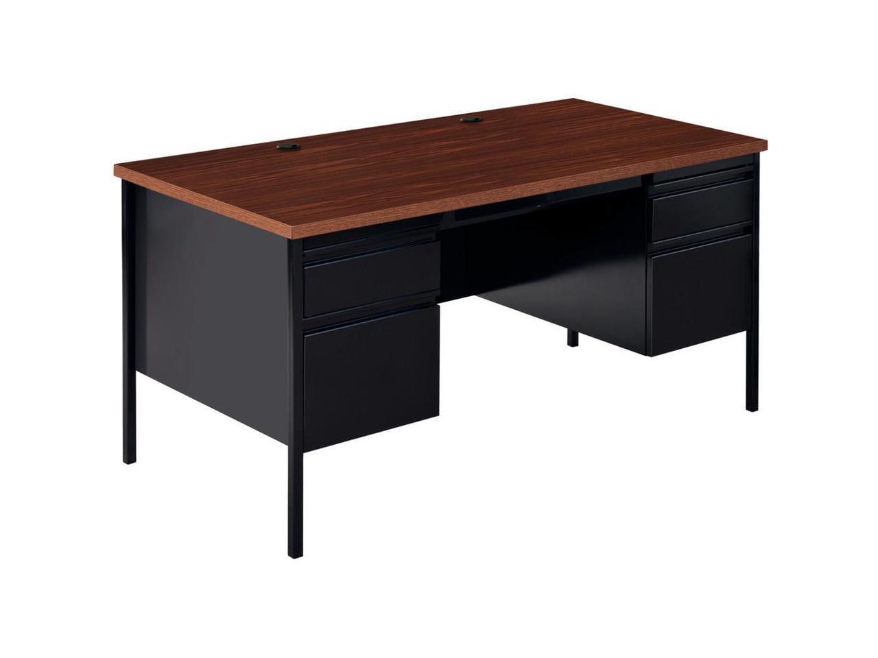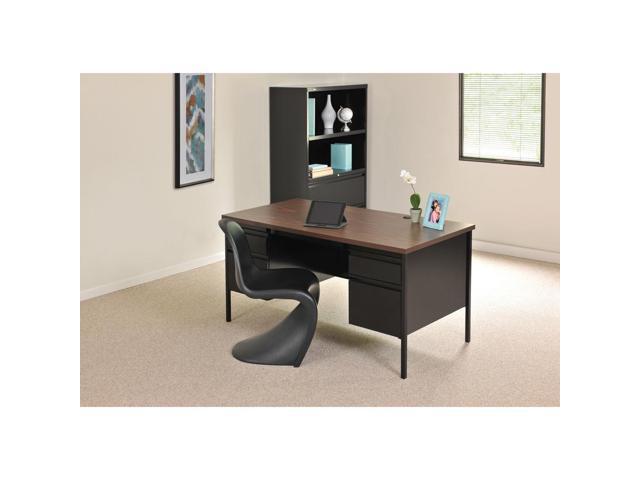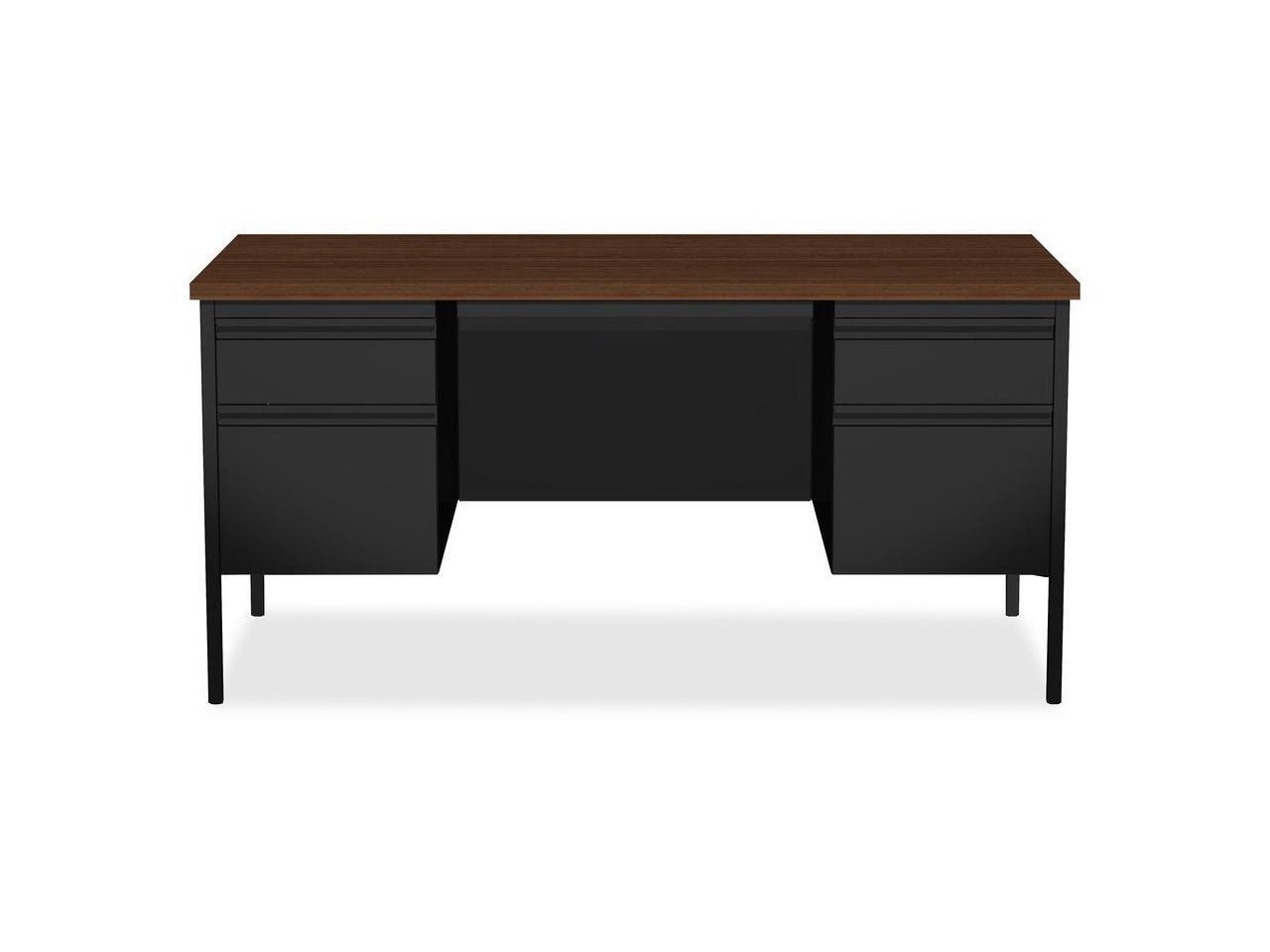 Lorell Double Pedestal Desk 60"x30"x29-1/2" Black Walnut 60927