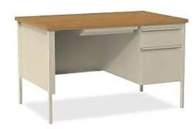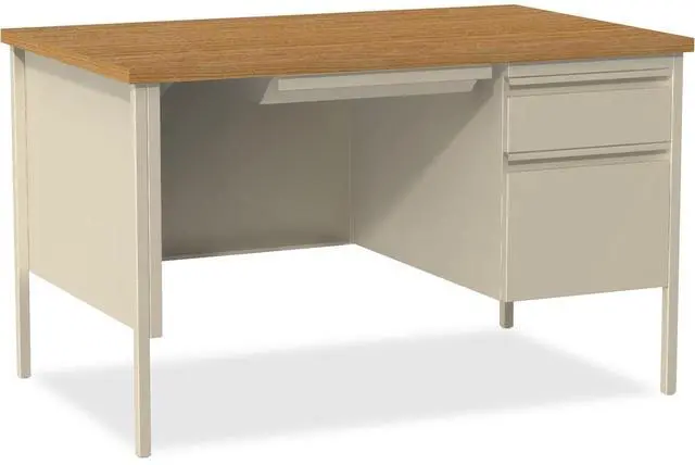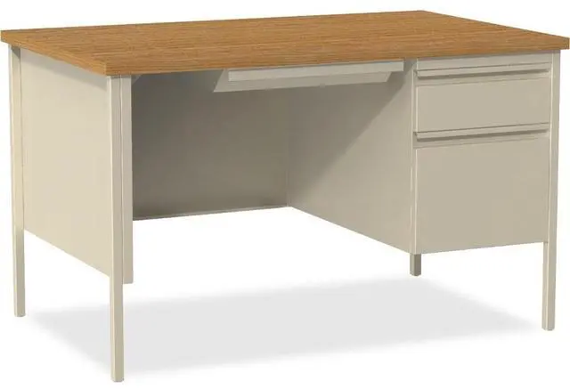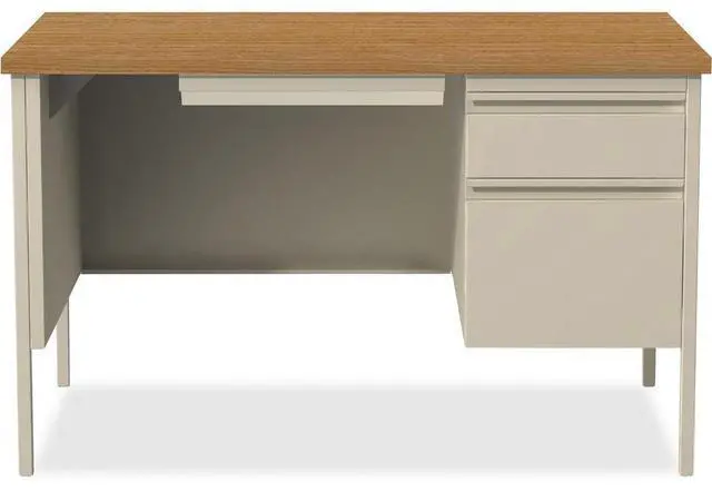 Lorell 66908 Fortress Series 48" Right Single-Pedestal Desk. Rectangle - 1 Pedestals - 30" x 48" x 29.5" - Steel - Putty