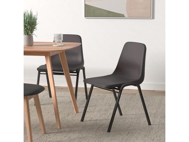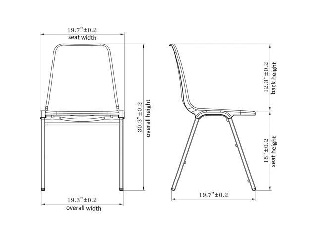 - Sturdy stacking chairs feature injection-molded plastic back and seat that are contoured for a supportive fit. Tubular metal frame features a black powder-coat finish for durability....