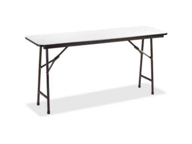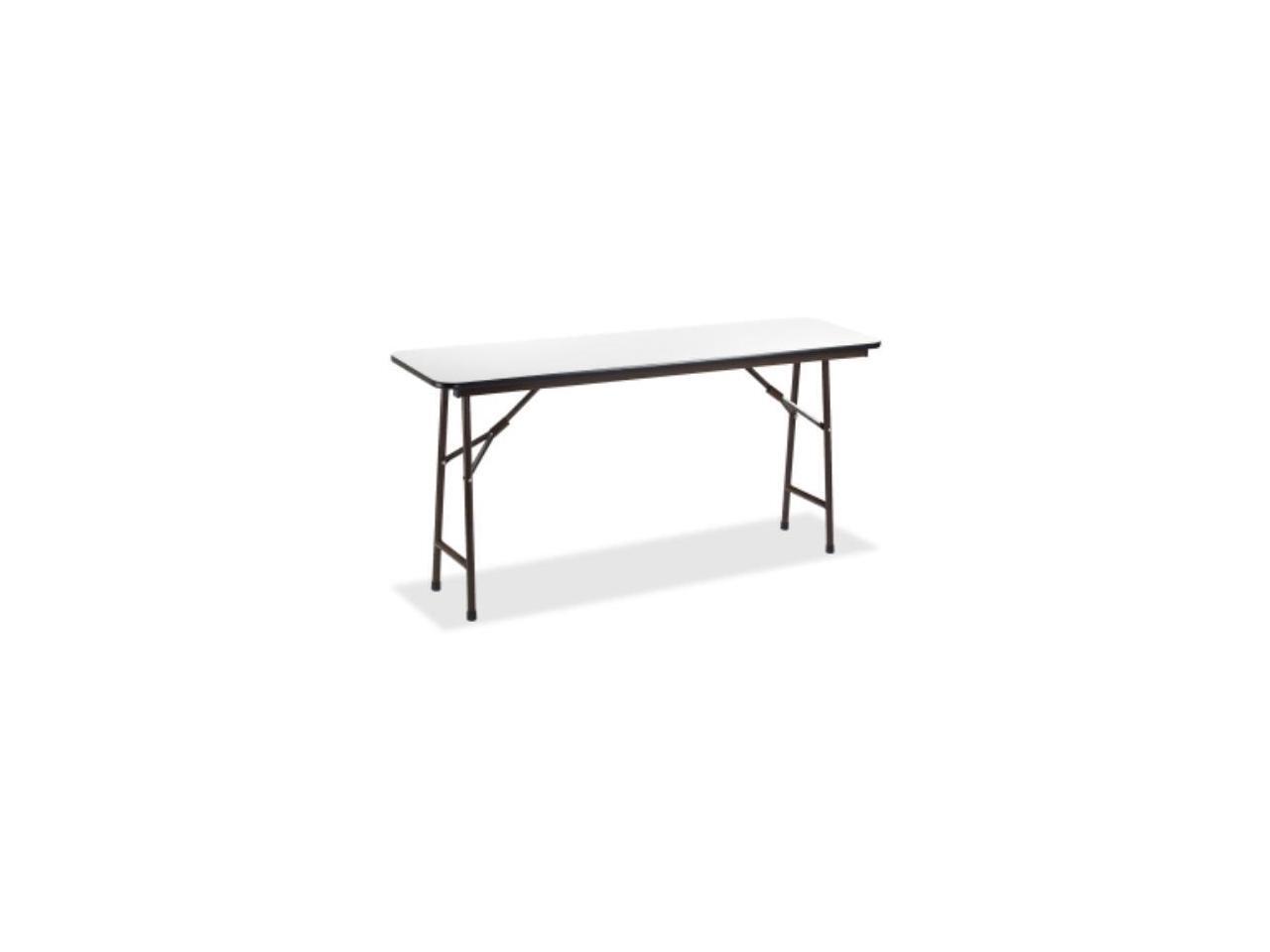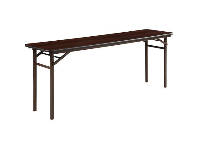 Folding banquet table offers a convenient 18" width for easy access to a spread of food or interactive presentations. Mahogany melamine top is 5/8" thick. Coil steel frame features a...