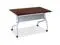 Versatile training table offers flexible configurations and convenient storage. Use individually or secure together into rows with a reliable metal connector (sold separately). Top flips up for easy storage without having to remove the connector. Top features a melamine surface with a 3mm PVC straight edge. Two grommets allow easy cord management. Four-leg, all-metal base features a one-way fold and modesty panel. Table rolls easily on four nylon casters with brakes.
