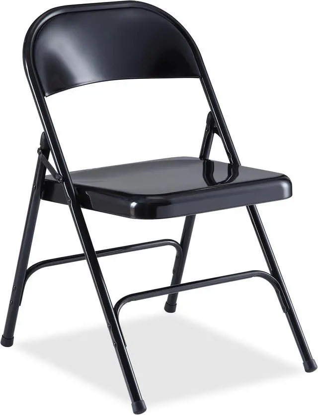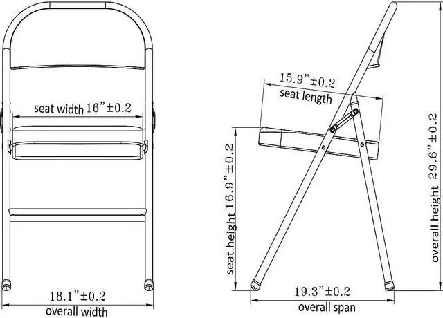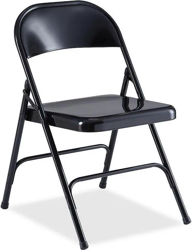 Folding chair features riveted U-braces between front and back legs and powder-coated steel frame. 7/8" tubular frame with 5/8" leg connecting tube offers a lightweight design for easy setup. Endcaps on the legs protect floor surfaces. Weight capacity is 250 lb.