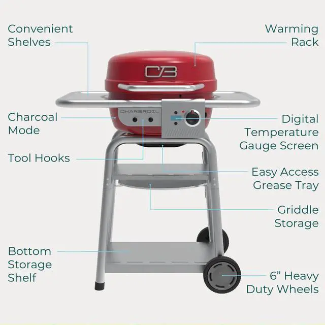 Need a space-efficient grilling solution that does a little bit of everything, without sacrificing flavor? Easy, delicious, and versatile outdoor cooking has never been easier for the grilling novice or pro. The Charbroil Bistro Pro Electric Grill & Griddle + Charcoal Mode is the ultimate small space grill that features Char-Broil's dynamic Electric2Coal cooking system, which uniquely allows you to switch between electric and charcoal grilling. With its high max temperature, this electric grill offers endless grilling opportunities to cook anything from juicy burgers to seared steak to fluffy pancakes and eggs.