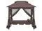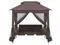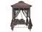 This stylish and spacious gazebo swing bench, featuring a spacious and stylish design, comfortably seats two persons and provides shade from the sun with its large canopy.
