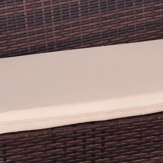 This is our 4 pieces brown PE rattan wicker furniture set, including 1 loveseat, 2 single sofa and 1 coffee table with glass top. This furniture set will light your outdoor living space and make it animate for its modern and upscale design. Made of eco-friendly rattan material and steel frame, this furniture will be sturdy and serve you for a long time. Matched beige seat cushions come with to add comfort for the seat. Coffee table with a glass top and middle shelf, providing enough storing space. Just buy this furniture set, and in the nightfall, seat on sofa with your friends or family, enjoy drinks and have a chat. What a cozy life. Do not hesitate, just buy one set!