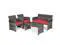 Rattan patio set includes one loveseat, two single chairs and one coffee table.