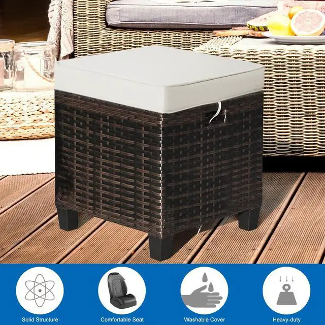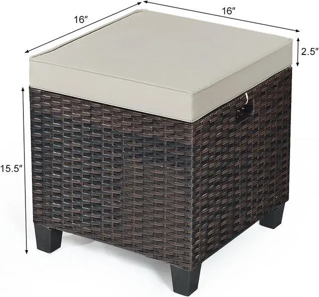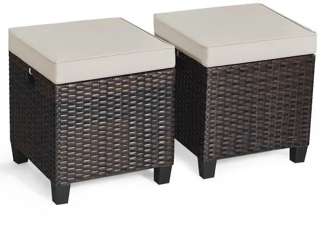 Want to buy a 2 piece ottoman that is best in class having all the style, space, comfort and elegance. Try our 2-piece rattan ottoman set, it is made to satisfy your expectations. Made of PE wicker and sturdy steel, the set has a large weight capacity and is weather resistant for sturdy use. The ottomans are equipped with soft and high-resilient cushion for a comfortable sitting experience. Besides, each cushion has a rope for fixing it with the ottoman to prevent it from slipping. What's more, the covers of seat cushion are easy to be taken off and washed if it gets stained or dirty. The ottoman can be used as a single-seat, rearranged, or combined with other furniture set to get the best use of. So bring your home a beautiful ottoman set and enjoy the quality and comfort.