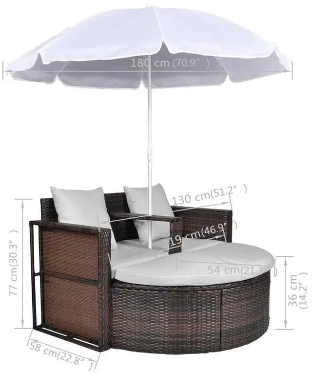 Delivery Contains: Lounge set with detachable parasol and cushions