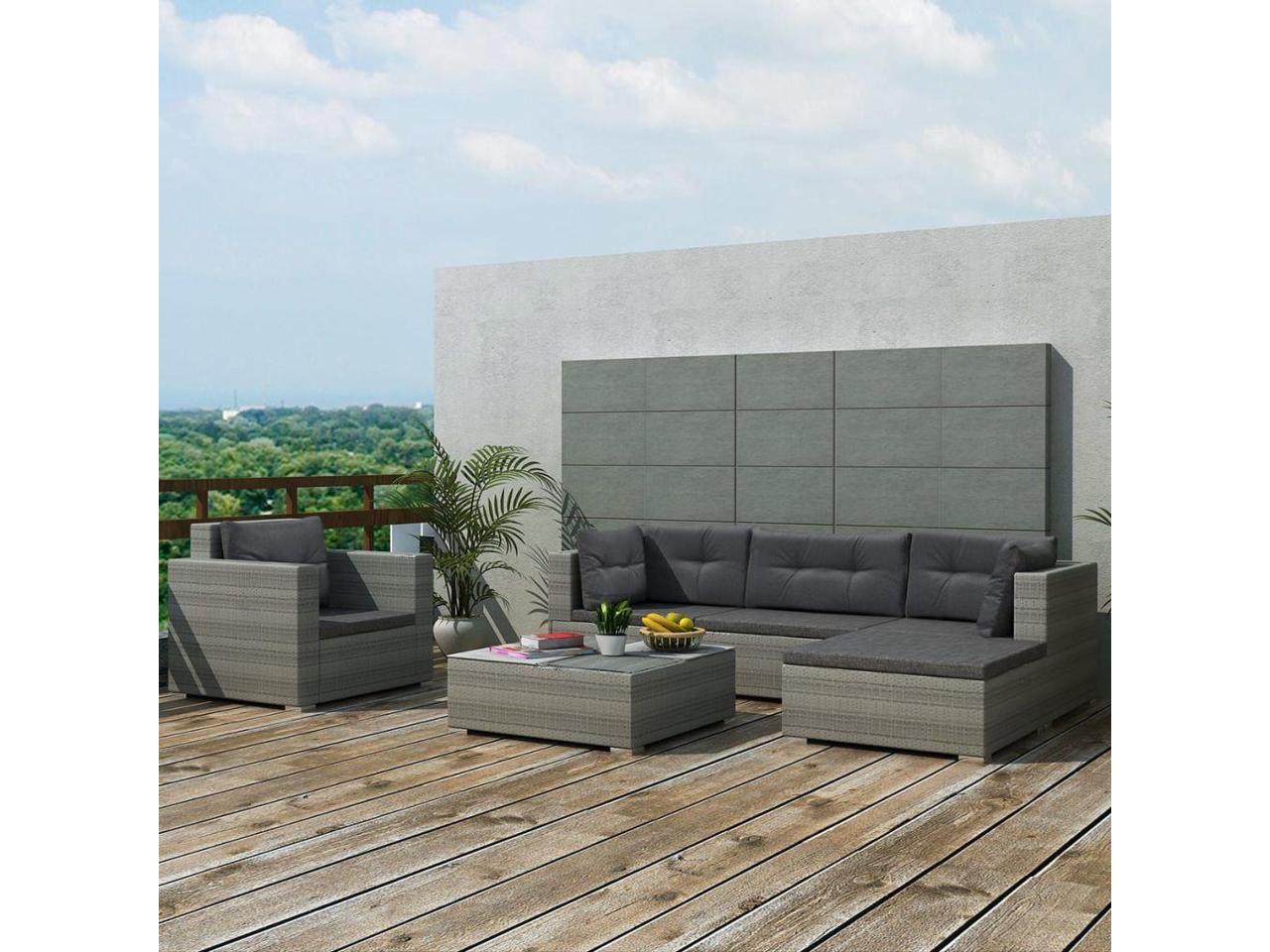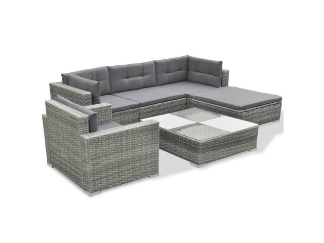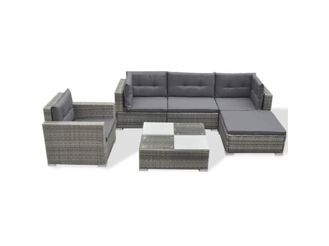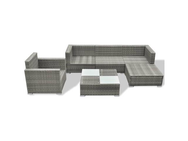 vidaXL Patio Furniture Set 6 Piece Sofa with Coffee Table Poly Rattan Gray