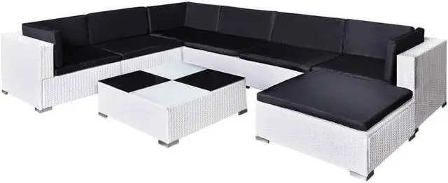 Delivery includes 3 corner sofas, 3 center sofas, 1 ottoman, 1 tea table, 7 seat cushions and 9 back cushions.