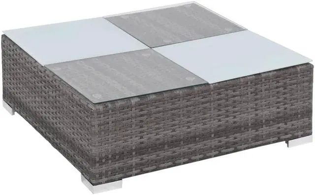Material: PE (polyethylene) rattan + glass tabletop + powder-coated steel frame