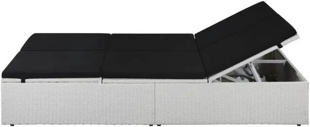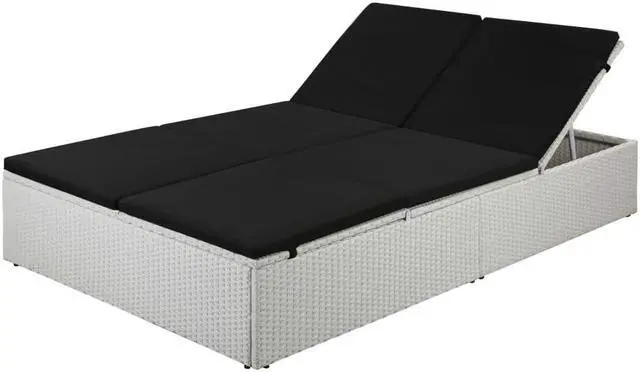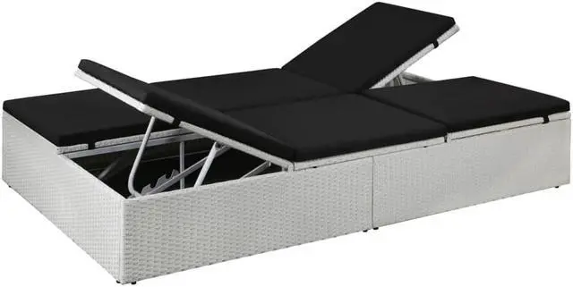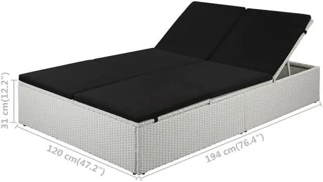 This high-quality 2-person poly rattan sunlounger combines style and functionality, and will become the focal point of your garden or patio. Thanks to the water-resistant PE rattan, the sunlounger is easy to clean, hard-wearing and suitable for daily use. The sunbed features a sturdy powder-coated steel frame, which is highly durable. Both sides of the lounger can be pulled up and the backrests can be adjusted in four different levels for the most comfortable position. The thick, removable cushions with foam filling inside will undoubtedly provide the ultimate seating and lying comfort.