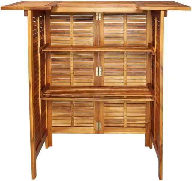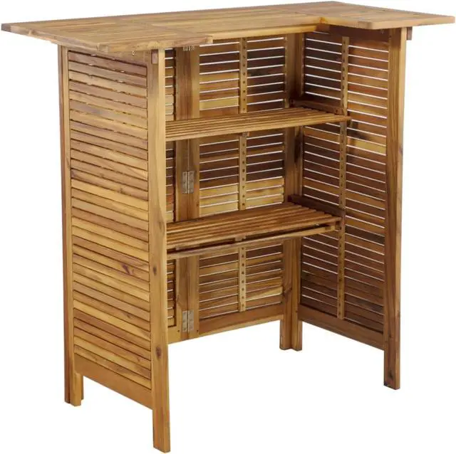 Take a sip of your favorite wine or enjoy a nice meal with your family or friends around this solid acacia wood bar table. The wooden table will bring a rustic charm to your outdoor or indoor living space.
