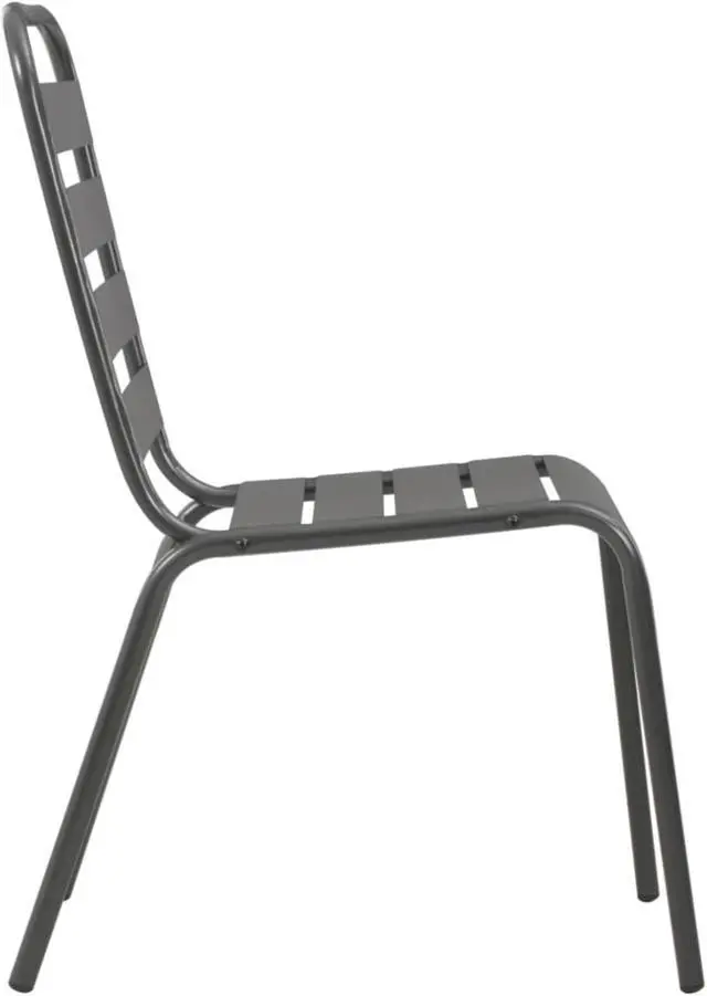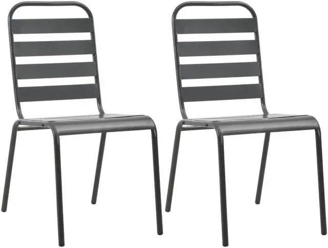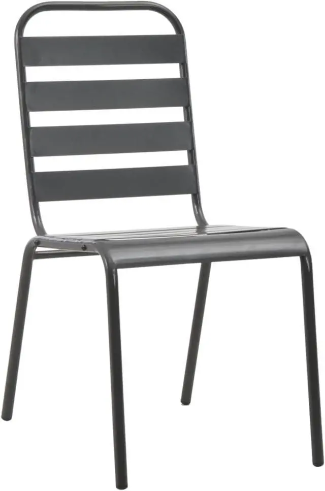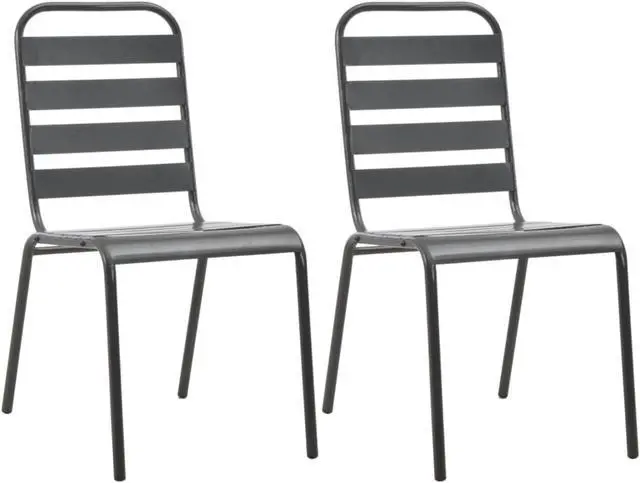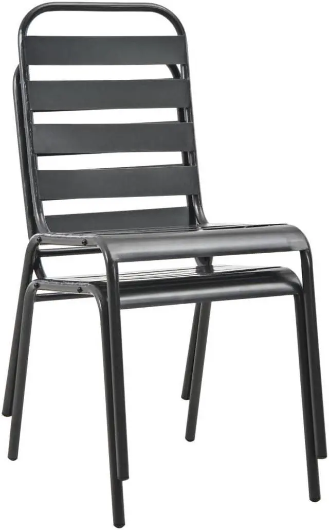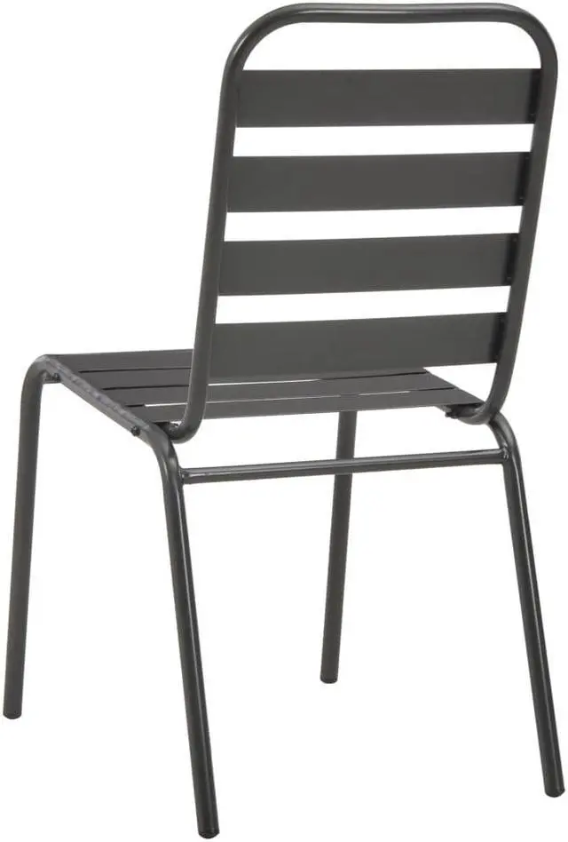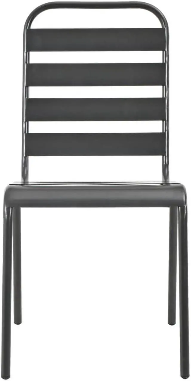 The high-quality patio chairs are made of sturdy steel that has been e-coated and then powder-coated. The e-coating (electrophoretic coating) is applied to make the chairs resistant to rust, weather, and long-term outdoor use, while the powder coating helps to enhance the durability. The patio chairs are easy to clean and maintain. The dining chairs can be stacked to save space when not in use.