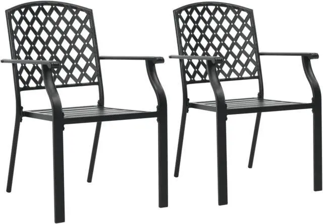 These dining chairs have a mesh design and will add a touch of industrial style to your patio living space. The high-quality chair set is made of sturdy steel that has been given an e-coating and powder coating. The metal patio chairs are extra strong, durable, and weather and rust resistant. They are also very easy to clean and maintain thanks to the finish. The chairs are easy to assemble. Delivery includes 2 chairs.