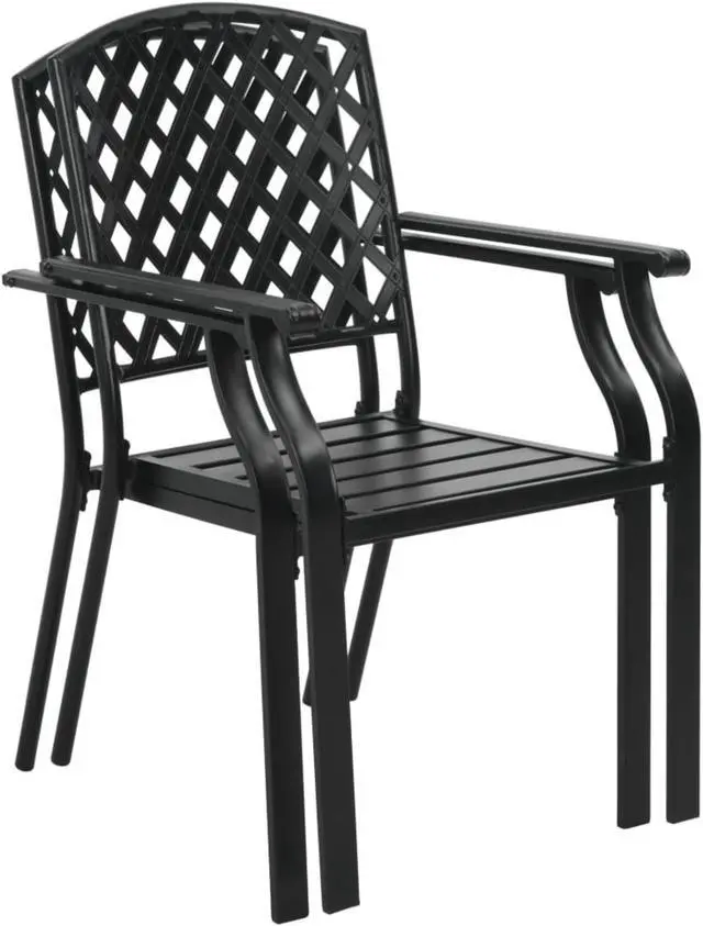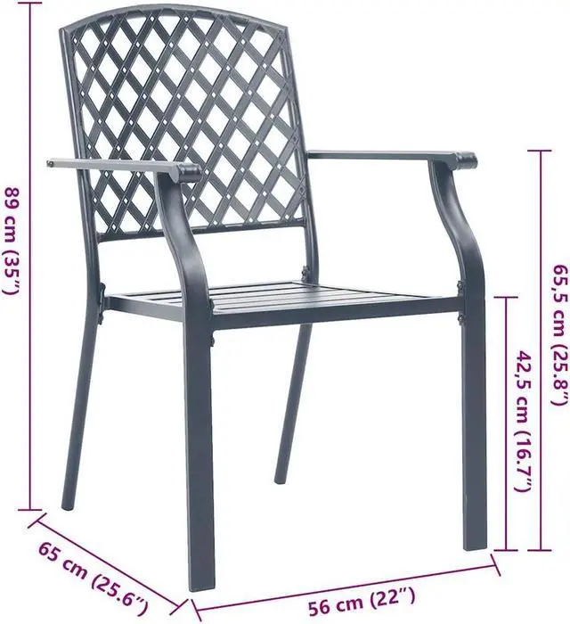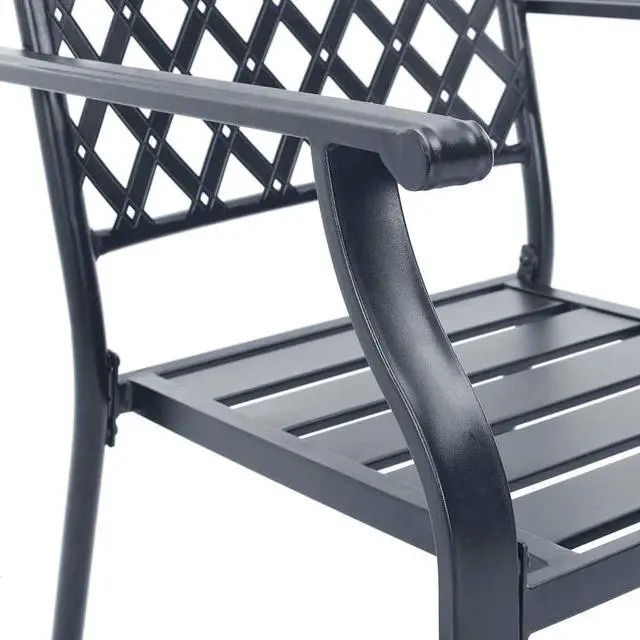 The high-quality chair set is made of sturdy steel that has been given an e-coating and powder coating. The metal patio chairs are extra strong, durable, and weather and rust resistant. They are also very easy to clean and maintain thanks to the finish.