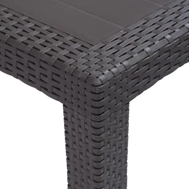 The rattan look dining table is made of solid plastic, which makes it durable and strong, as well as weather resistant and easy to clean. Meanwhile, its rattan look design adds a touch of natural charm to your patio living space. The patio table is also lightweight, which makes it easy to move around.