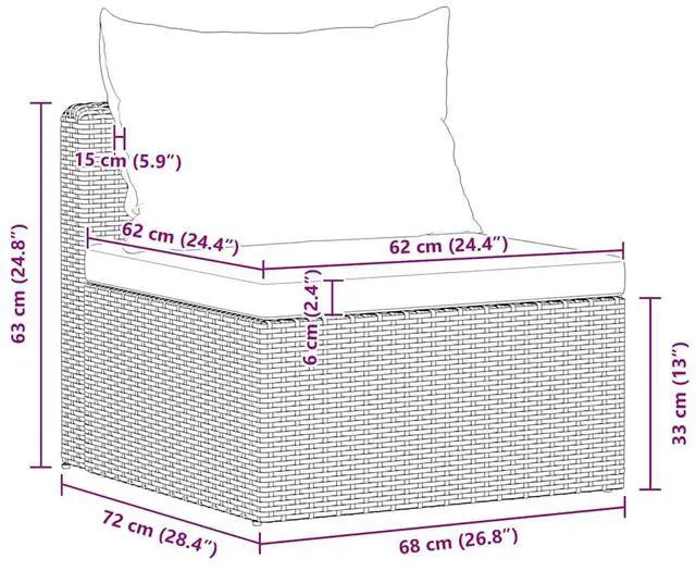 Middle sofa dimensions: 26.8" x 28.3" x 24.8" (W x D x H)